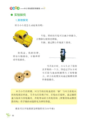 回力小车的原理: 回力车的后轮连接的 “轴” 与回力齿轮内