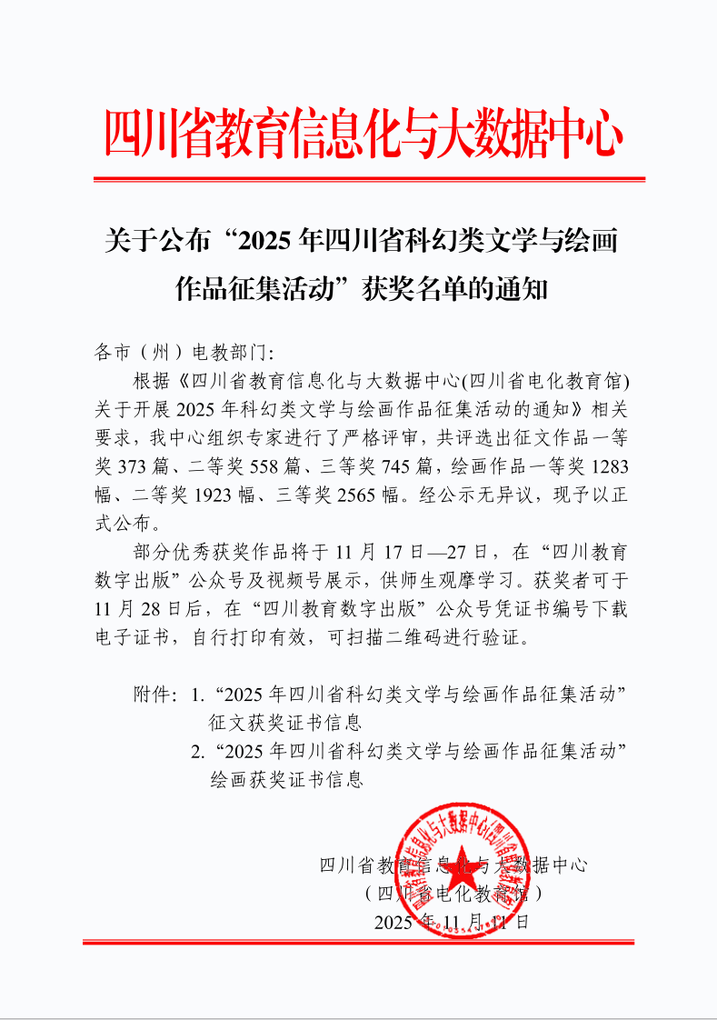 关于公布“2025年四川省科幻类文学与绘画作品征集活动”获奖名单的通知
