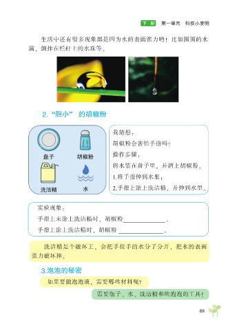 洗洁精是个破坏王, 会把手拉手的水分子分开, 把水的表面